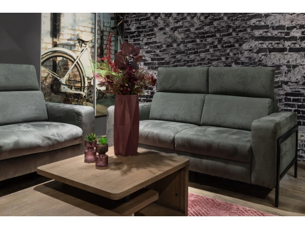 Met zetel Napels kun je echt alle kanten uit. Met keuze uit diverse elementen, stoffen, kleuren en opties kun je dit model echt tot in de puntjes naar wens samenstellen. Zo heb je keuze uit 6 soorten armleuning, 3 type poten, 2 zithoogtes, 3 soorten zitcomfort, en nog veel meer. Wij kozen er alvast deze 2-zit uit met verstelbare hoofdsteunen. In deze uitvoering werd Napels in een mooi groen jasje gestoken, met designpoot. Wil je graag een combinatie met een 3-zit en elektrische relaxen? Dat kan ook! Kom langs en laat je adviseren door onze ervaren verkopers, of ga voor dit stijlvolle exemplaar.