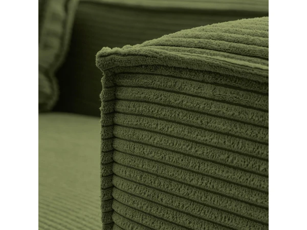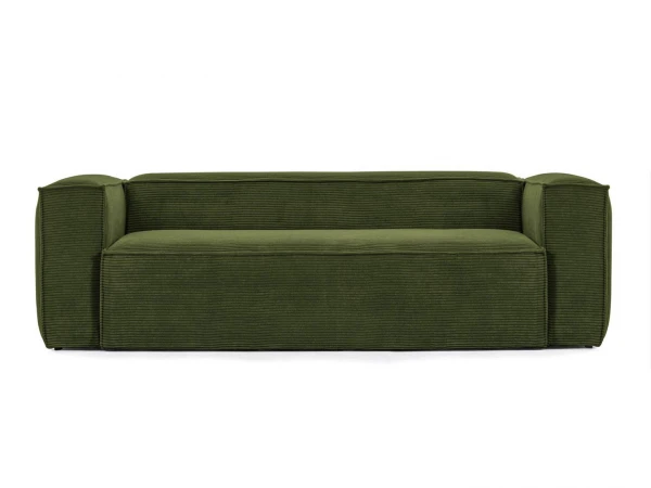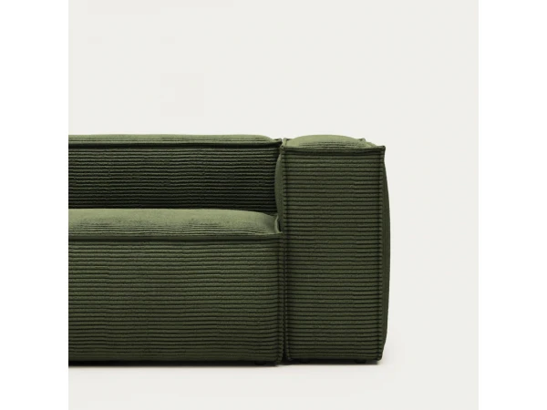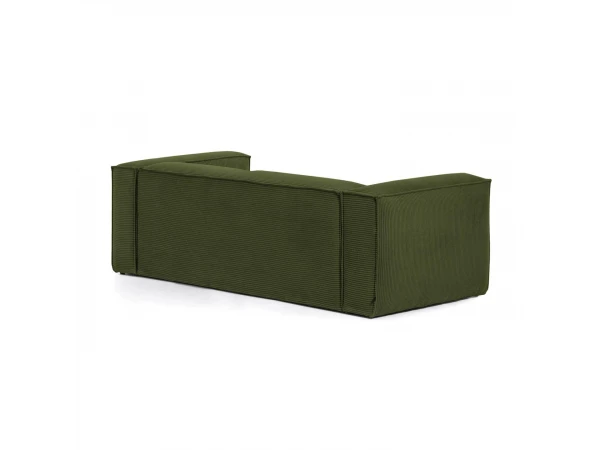 3-zitsbank Blok van Kave Home komt nu ook in groen corduroy en voegt de brede Franse naad toe om het contour van de bank heen. Deze stof met brede stiksels zorgt voor een zacht en aangenaam oppervlak met veel comfort. De zetel is gemaakt via ambachtelijke processen wat zorgt voor minder impact op het milieu, ook het dennenhout van het binnenframe komt uit duurzame bossen met gecontroleerde houtkap. Naast groen ribfluweel zijn er nog vele andere kleuren beschikbaar! Kom langs in de toonzaal om jouw Blok zetel naar wens samen te stellen, of ga voor deze stijlvolle 3-zitsbank in ribfluweel.