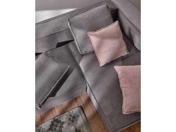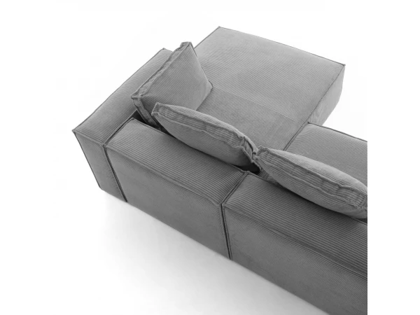 Deze nieuwe versie van zetel Blok bekleed met grijs corduroy voegt de brede Franse naad toe om het contour van de bank heen. Deze bank is ontworpen door Òscar Doll, designer bij Kave Home, die er voor heeft gezorgd om deze nieuwe versie het allerbeste aan te laten houden: jouw Blok naar eigen smaak. Jij beslist hoe groot, twee of drie persoons, en waar je de chaise longue wilt plaatsen. Kom langs in de toonzaal om jouw Blok zetel naar wens samen te stellen, of ga voor deze stijlvolle 3-zit met longchair in ribfluweel rechts.
