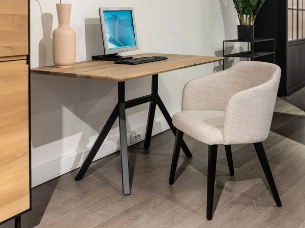 Armstoel Amor is een tijdloze armstoel die je gemakkelijk integreert in elk type interieur. De comfortabel gevormde kuipzit met zwarte houten poten heeft een prachtig design. Deze armstoel is verkrijgbaar in verschillende stoffen en kleuren, te kiezen uit de stofstalen in onze toonzaal. Kom langs om alle mogelijkheden te ontdekken, en deze stoel naar hartenlust uit te testen.
