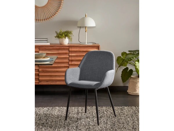 Armstoel Konna van Kave Home is een ware aanwinst voor jouw interieur, is hij niet prachtig? De Konna stoel heeft een bekleding in stof en metalen poten met zwarte poedercoating. Deze moderne eetkamerstoel zit dankzij zijn armen uiterst comfortabel. In deze eetkamerstoel zit je dan ook uren op je gemak voor een lange brunch of diner. Combineer je graag stoelen in verschillende kleuren? Dat kan, want deze Konna stoel is beschikbaar in diverse trendy kleurtjes. Ook beschikbaar in velvet stof en corduroy!