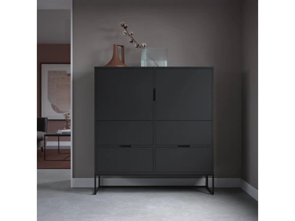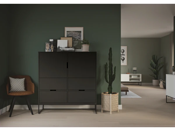 Barkast Lipp van Tenzo is een hedendaags, modern meubel met een minimalistisch design. Scandinavische simpliciteit die voor zichzelf spreekt. Deze kast beschikt over 2 draaideuren en 4 schuifladen. De handgreepjes springen hier meteen in het oog, en zijn rechtstreeks in het meubel gegraveerd. Het elegante, strakke en eenvoudige onderstel vult dit meubelstuk prima aan. Deze moderne wandkast is beschikbaar in verschillende kleuren: groen, wit en zwart. Ontdek alle opties online of in onze toonzaal.
