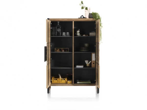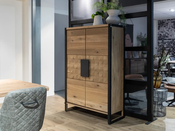 Bergkast Metaluxe van Henders & Hazel is uitgevoerd in de kleur Railway brown en afgewerkt met metalen details. Dit geeft de kast een stoere, industriÙle en toch warme uitstraling. In het middelste segment van de deuren zit een diamantvorming reliÙf, wat een uniek en leuk detail geeft aan deze barkast. Deze kast is perfect te combineren met andere meubelen van Henders and Hazel in Railway brown, zoals de Metalo collectie en de tafels uit de Metalox/Metaluxe collectie.