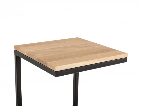 Deze bijzettafel of laptoptafel schuif je gemakkelijk over de armleuning van je zetel, zodat je je laptop of drankje steeds binnen handbereik hebt. Daarnaast kan dit tafeltje ook perfect dienen als bijzettafeltje in de woonkamer om te decoreren met bijvoorbeeld een plant of een vaas. De combinatie van hout en metaal zorgen voor een moderne look.