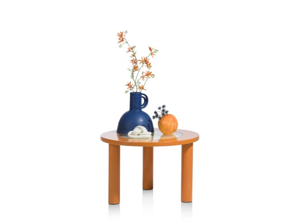 Bijzettafel Billy van Coco maison is een leuk tafeltje met een trendy oranje kleur, perfect voor een modern of retro interieur. In het blad is webbing en glas verwerkt. Combineer de bijzettafel met de blauwe en crèmekleurige Billy tafeltjes uit de Coco maison collectie om een mooie set te creëren.