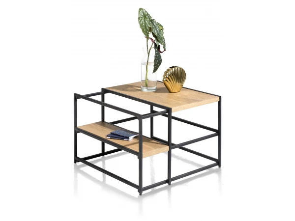 Als je van opvallende items houdt in het interieur, die ook nog eens functioneel zijn, dan is deze bijzettafel uit de City collectie een aanrader. De bijzettafel is 60×60 cm en heeft een bijzonder design. De bladen van de tafel zijn van eikenfineer, in de kleur Castle antraciet of Railway brown. De metalen onderdelen zijn goudkleurig of zwart metaal. Deze combinatie zorgt voor een elegante industriÙle uitstraling.