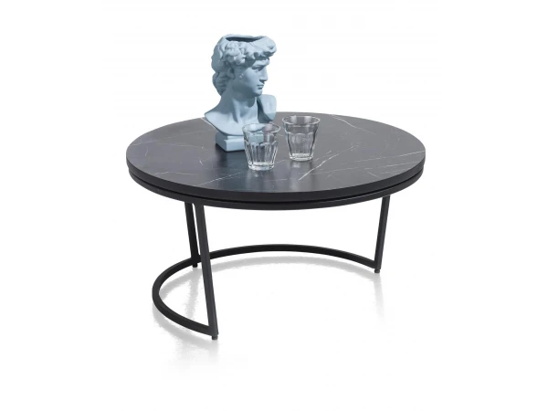 Salontafel City geeft je interieur een stijlvolle en toch industriÙle toets. De bijzettafel bestaat uit een marmerlook tafelblad en een metalen onderstel. Met dit eigentijds design past dit tafeltje in een moderne en industrieel interieur. Om de look helemaal af te werken, kan je deze tafel combineren met de andere bijzettafels uit de City collectie.