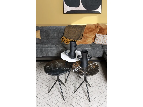 De prachtige natuurlijke tekening van het marmeren tafelblad op zwartmetalen pootjes maakt van deze bijzettafeltjes een tijdloze aanwinst voor elk interieur. Deze bijzettafeltjes zijn verkrijgbaar in zwart, bruin, groen en wit. Combineer naar hartenlust of ga voor je favoriete kleur!