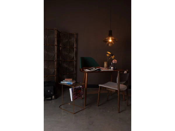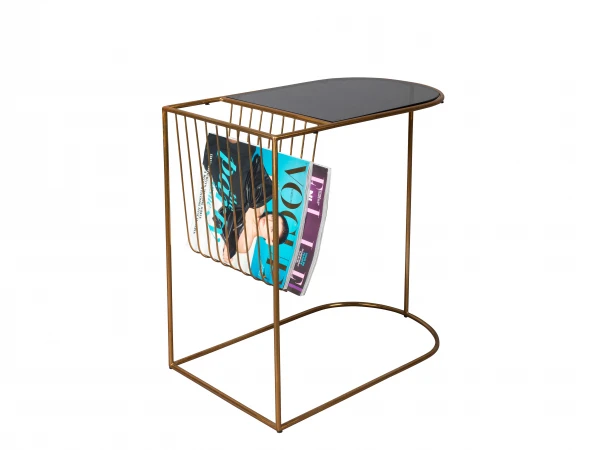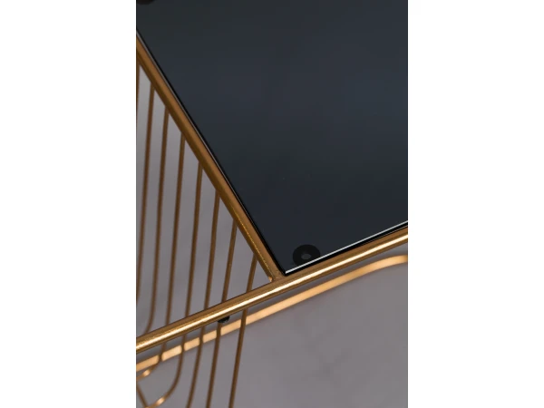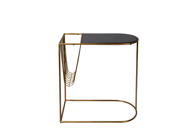 Eileen heeft een frame dat afgewerkt is met een gouden kleur, en in combinatie met het stijlvol design straalt het totaalplaatje echte elegantie uit. Dit open frame ondersteunt een zwart glazen topplaat waarop je boeken of een drankje kan plaatsen. Deze boeken kunnen vervolgens handig in de magazinehouder gelegd worden waar het frame ook rekening mee gehouden heeft. Haal met Eileen van Dutchbone een echte lobby sfeer in je woonkamer.