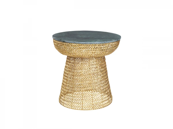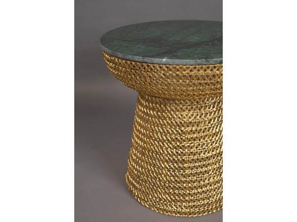 Bijzettafel Gauri van Dutchbone is een uniek tafeltje, met een goudkleurige basis en een blad in groen marmer. Ongelofelijk chique dus. Het ontwerp doet denken aan een sculptuur uit de oudheid en maakt hiermee een echte statement in je woonkamer. Een toets klasse en glamour, als het ware.