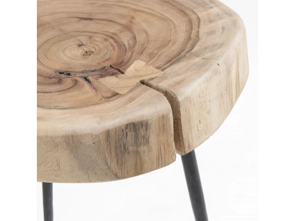 Ronde bijzettafel Eider van Kave Home beschikt over een dik blad in massief acaciahout en zwart metalen pootjes. Het contrast tussen het naturel, robuust blad en de fijne, elegante pootjes is een lust voor het oog. Dit tijdloos tafeltje past perfect in een botanische en zelfs koloniale setting. Verkrijgbaar in meerdere afmetingen!