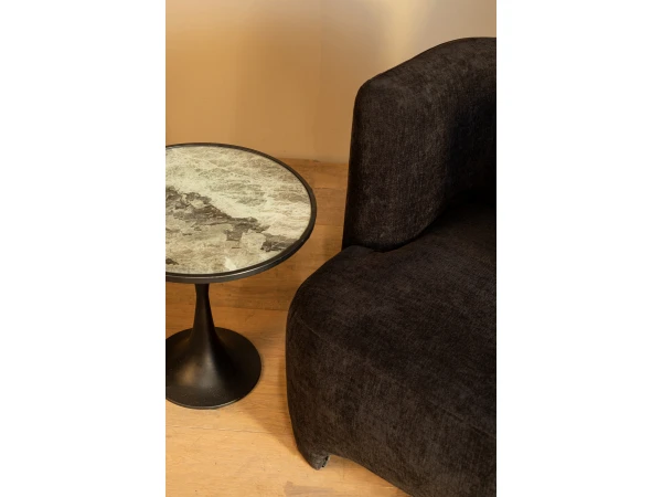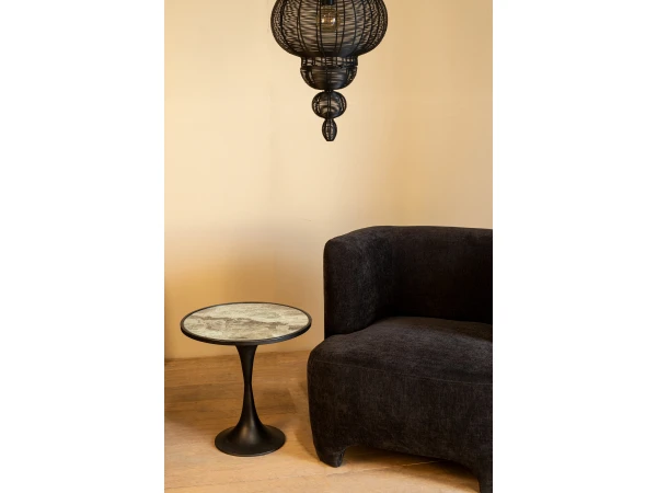 De prachtige natuurlijke tekening van het marmeren tafelblad op een zwartmetalen poot maakt van deze bijzettafel een tijdloze aanwinst voor elk interieur!