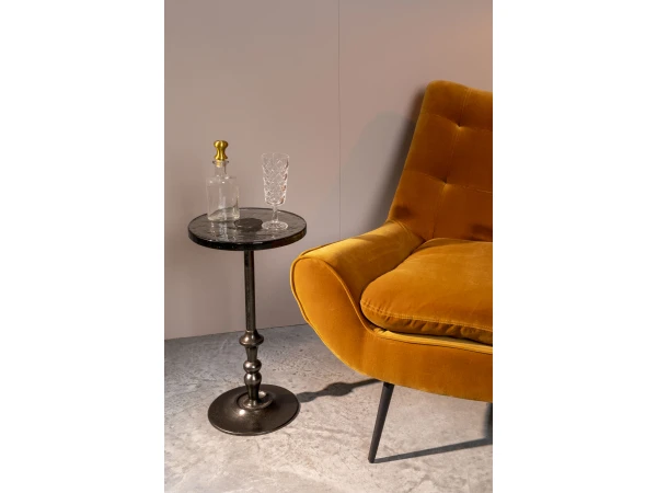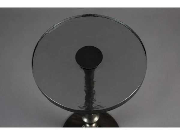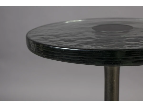 Het tafelblad van bijzettafel Sue is als kijken in een plas. Dit opvallende effect wordt veroorzaakt door het speciale fabricageproces. Zo maakte Dutchbone het tafelblad van verschillende tinten gerecycled glas. Het resultaat is een dik tafelblad waarin de vloei van het glas nog zichtbaar is. De sokkel is gemaakt van dik metaal in een klassieke vorm. Bijzettafel Sue van Dutchbone zorgt voor een karaktervolle, klassieke afwerking van je interieur.