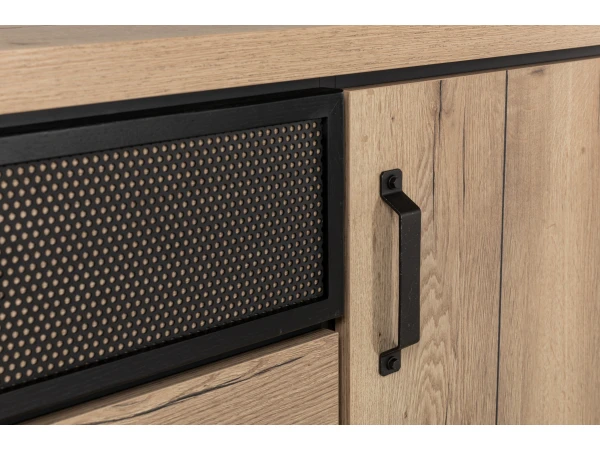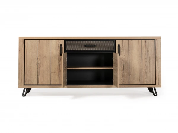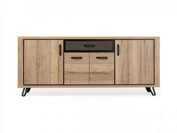 Deze dressoir van de Archie collectie heeft 4 deuren en 1 lade en biedt je veel opbergruimte. Ze is ook beschikbaar in een kleinere uitvoering.