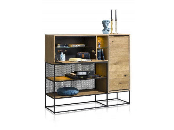 Deze multifunctionele dressoir uit de City collectie van Henders and Hazel is gemaakt om spullen in op te bergen, decoratie uit te stallen en aan te werken. De dressoir is voorzien van 1 deur, 1 klep en 4 niches met ledverlichting. Deze klep is handig om te gebruiken als bureau. Zo kan je na het werk of studeren alles snel en netjes opruimen en liggen er geen spullen meer in zicht.