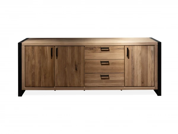 De Denemarken collectie bestaat uit diverse eetkamer meubelen uit hout en metaal. Het dressoir heeft metalen frames als poten en combineert prachtig met de warme houtsoort. Ga jij ook voor een moderne en tijdloze look met dit geweldige meubelstuk? Door de naturel houten kleur en het strakke frame past dit mooie dressoir zowel in een landelijk, modern als industrieel interieur.
