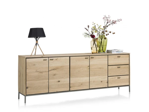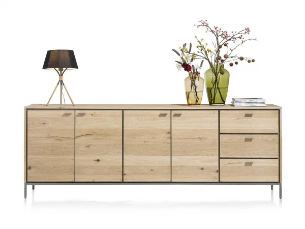 Onze Xooon Faneur serie is een moderne, tijdloze serie. De collectie Faneur is voorzien van een lichte houtlook met mooie nerfstructuur. De details zijn strak en subtiel, met kleine handvaten en smalle poten. Deze Faneur dressoir heeft 4 deuren en 3 laden en is 240 cm breed. Hij is ook beschikbaar in andere uitvoeringen.