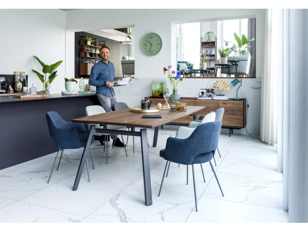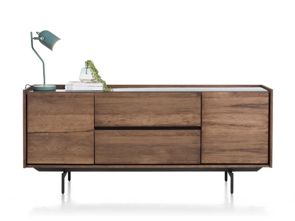 Dressoir Halmstad is een prachtig wild eikenhouten dressoir, een prachtig stukje Scandinavisch design ge´nspireerd door de jaren ’50 en ’60. Halmstad is uitgevoerd in choco brown kleur en heeft een bovenblad in zwarte marmerlook. Het dressoir oogt luchtig dankzij het lage ontwerp en de zwart metalen poten. Deze dressoir is 190 cm breed en voorzien van 2 deuren en 2 laden. Ze is ook beschikbaar in andere uitvoeringen.