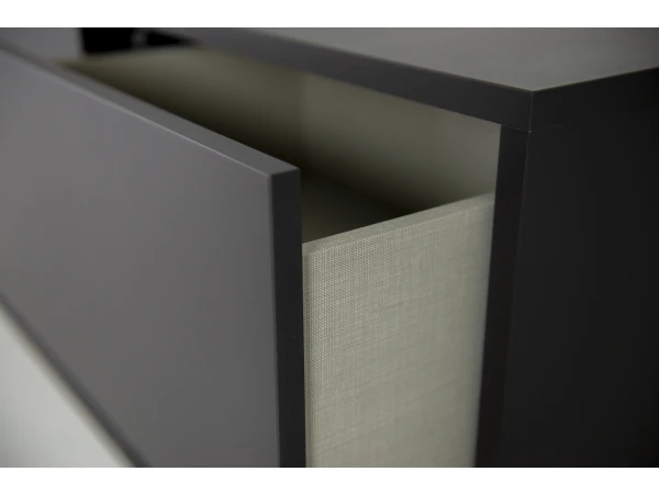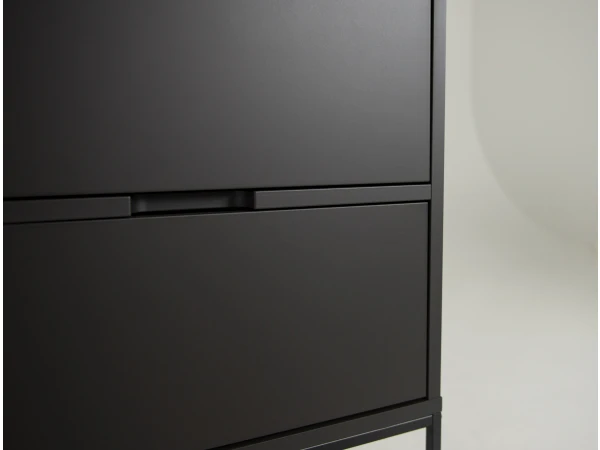 - Materiaal: gelakt MDF, spaanplaat, zwart metaal