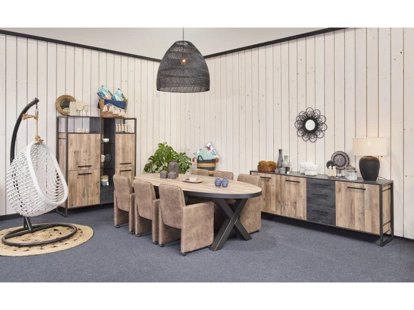 Deze dressoir in natuurlijke parketlook en grijs staal staat mooi in zowel een landelijk, modern als industrieel interieur. De combinatie van hout en staal geeft zowel warmte als een stoer uiterlijk. Deze landelijke dressoir is beschikbaar in 3 groottes, waarvan dit de grootste variant is met een breedte van 254 cm. Deze dressoir niet gemonteerd, waardoor je hem gemakkelijk kunt transporteren. Indien gewenst is hij ook voorgemonteerd beschikbaar.