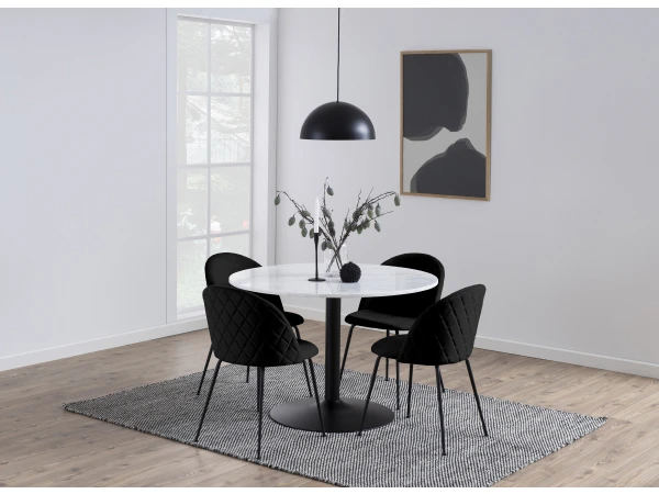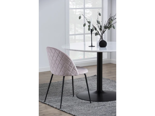 Eetkamerstoel Louise is een elegante en stijlvolle retro stoel met een bekleding in diep fluwelen velvet stof, ruitstiksels in de rugleuning, en metalen pootjes. Afhankelijk van de kleur bekleding krijg je zwarte of gouden metalen pootjes, want deze stoel is beschikbaar in verschillende kleuren. Mix en match meerdere kleuren als je houdt van speelsheid in je interieur. Liever strak en modern? Hou je dan bij één kleur. Want op zichzelf zijn deze stoelen ook gewoonweg prachtig!