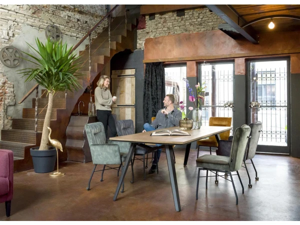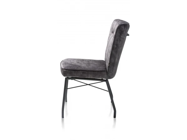 Eetkamerstoel Olvi, een eigentijdse design met een vleugje retro. De stoel is bekleed in stof Karese en is verkrijgbaar in 3 prachtige kleuren. Deze warme en zachte stof voelt aan als velvet en geeft een stijlvolle toets aan de eetkamerstoel.