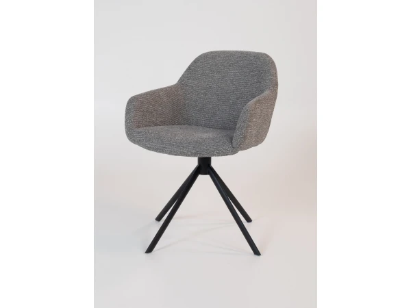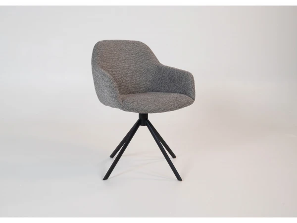 Eetkamerstoel Xylo is een comfortabele armstoel, in een prachtige industriële stijl. Deze stoel heeft een zitting in onderhoudsvriendelijke stof en een grijze kleur. Dit combineert mooi met het zwart metalen frame. Een mooie toevoeging in elke eet- en woonkamer. Dit exemplaar is voorzien in een draaibare sterpoot.