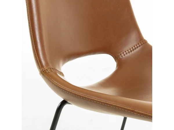 Eetkamerstoel Zahara van Kave Home komt in vele uitvoeringen. Deze Zahara is een stoere stoel met een strakke bekleding in bruin imitatieleder. Het frame is gemaakt van metaal en afgewerkt met een zwarte poedercoating. Kave Home koos verder nog voor sierstiksels bij dit model om het stoere accent nog meer in de verf te zetten. Zo kan deze mooie stoel perfect terecht in een modern, industrieel interieur.