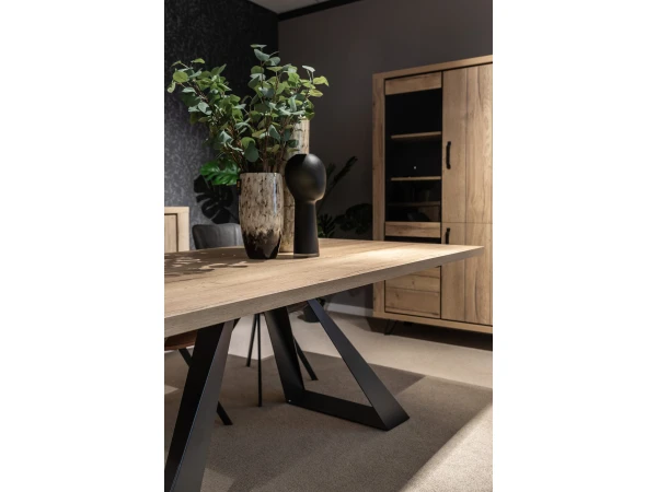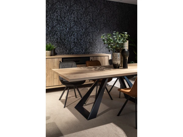Deze eetkamertafel met metalen poten van de Archie collectie is beschikbaar in diverse afmetingen (200, 220 en 240 cm breedte). Ze is ook beschikbaar met 4 poten in massief hout, en als uitschuiftafel.