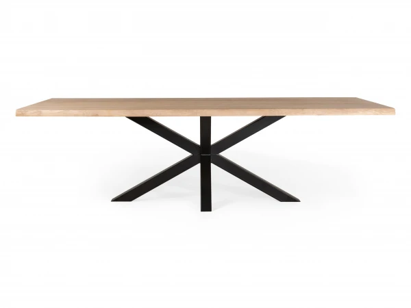 Eetkamertafel Castle tree heeft een massief eikenhouten tafelblad en een moderne zwarte metalen poot. Met deze tafel heb je heel wat mogelijkheden om jouw ideale tafel naar wens te creëren. Zo kun je kiezen voor een recht tafelblad of een boomstamblad met natuurlijke lijnen. Als afwerkingskleur van het tafelblad heb je keuze uit smoked oak, creamy white, natural en sand brown. Zo past deze tafel perfect bij de andere meubelen uit de William Winston collectie, die beschikbaar zijn in dezelfde kleuren. Voor de poot heb je keuze uit een zwarte metalen kruispoot, dubbele kruispoot, A-poot of U-poot. Kom langs in onze toonzaal en ontdek alle mogelijkheden!