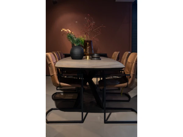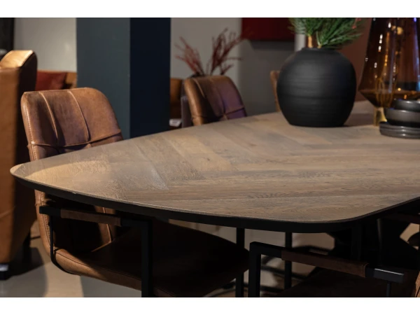 Een erg grote eetkamertafel met een prachtig visgraatmotief en afgeronde hoeken, dat is tafel Fishbone. Het design van deze tafel straalt pure klasse uit, mede dankzij het tafelblad in grijze eik en het unieke, zwart metalen onderstel. Toch erg mooi om te zien, zo’n spinpoot. Het tafelblad is bovendien afgerond, zodat het optisch dunner oogt ondanks zijn authentieke materialen. Past zo perfect in een moderne, industriële maar ook landelijke setting. Oog voor design, maar ook plaats nodig voor extra familie en vrienden? Dan heb je hier dus de oplossing!