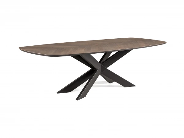 Een erg grote eetkamertafel met een prachtig visgraatmotief en afgeronde hoeken, dat is tafel Fishbone. Het design van deze tafel straalt pure klasse uit, mede dankzij het tafelblad in grijze eik en het unieke, zwart metalen onderstel. Toch erg mooi om te zien, zo’n spinpoot. Het tafelblad is bovendien afgerond, zodat het optisch dunner oogt ondanks zijn authentieke materialen. Past zo perfect in een moderne, industriële maar ook landelijke setting. Oog voor design, maar ook plaats nodig voor extra familie en vrienden? Dan heb je hier dus de oplossing!
