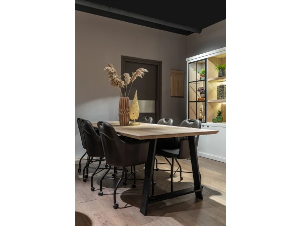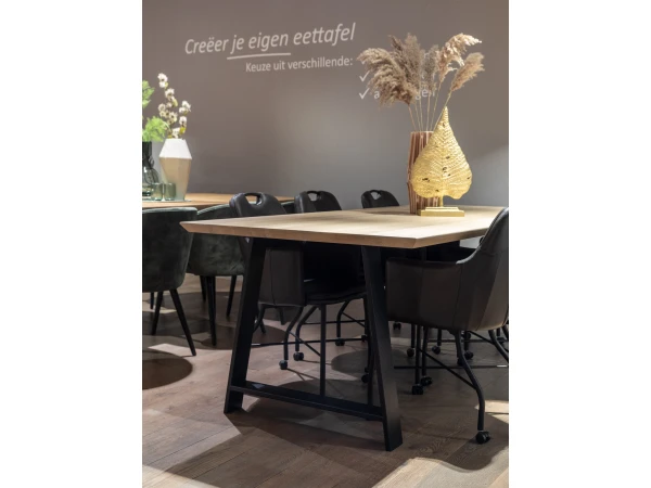 Deze stijlvolle eetkamertafel uit massief hout met zwarte metalen poten staat prachtig in elke woonkamer. Kies zelf je favoriete vorm, kleur en stijl van zowel het tafelblad als de poten, en creëer zo in volle vrijheid jouw perfecte tafel. Met keuze uit de kleuren creamy white, smoked oak, sand en nature voor het tafelblad kun je deze tafel gemakkelijk combineren met de andere meubelen van William Winston. Kom langs en ontdek alle mogelijkheden!