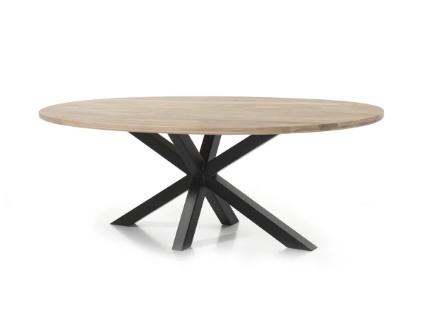 Aanschouw deze prachtige ovale eetkamertafel met massief tafelblad en spinpoot uit de Glasgow collectie. Een ovale tafel is gezellig en geschikt voor zowel kleine gezinnen als uitgebreide etentjes met familie en vrienden. Deze ovale tafel met spinpoot in zwart metaal heeft ook een heel trendy ontwerp. De combinatie van hout met metaal geeft jouw interieur een moderne en gezellige uitstraling.
