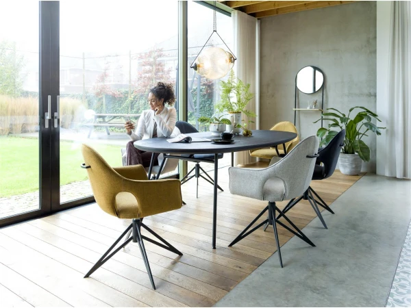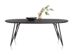 De ovale eetkamertafel Vik van Xooon is een prachtige eettafel met een unieke look. Tafel Vik is beschikbaar is in diverse vormen en maten, terwijl je ook kan kiezen uit verschillende kleuren. Zo kun je kiezen uit de bijzondere kleur onyx (zwartbruin eiken) of een naturel houten kleur. Deze eettafel valt op door zijn mooie ronde zwartmetalen designpoot waar een prachtig eikenhouten tafelblad op rust. Dit ovale exemplaar heeft als afmeting 220 x 120 cm. Zie jij jezelf al gezellig tafelen aan dit mooie exemplaar?