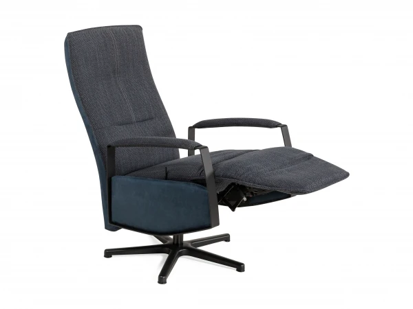 Zak na een lange dag heerlijk weg in de Alborg fauteuil van Xooon! Alborg biedt extra veel comfort doordat de rugleuning, hoofdsteun en voetensteun eenvoudig met de hand verstelbaar zijn. Wist je dat je deze relaxfauteuil volledig naar wens kan samenstellen? Zo heeft de zetel een stervormige draaipoot waarbij je kunt kiezen tussen zwart metaal of een opvallende designpoot. Ook het type arm kies je zelf, ga je voor een gesloten arm die rondom gestoffeerd is of toch voor een open arm in zwart metaal met gestoffeerd armvlak? De fauteuil is in drie verschillende groottes beschikbaar. Standaard is Alborg voorzien van suprÛme foam, maar je kan ook gaan voor pocketveren. Je kan kiezen uit veel soorten stof en leder in verschillende kleuren, ook duo-bekleding is mogelijk! Stel de fauteuil naar wens samen of kies voor deze mooie uitvoering in Toba donkerblauw.