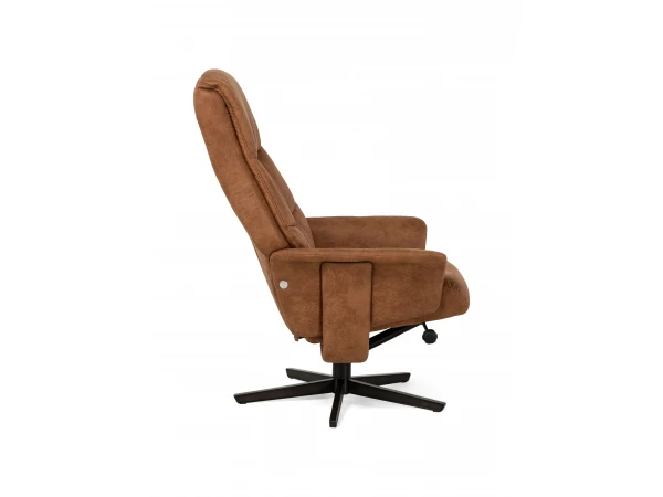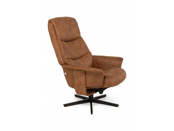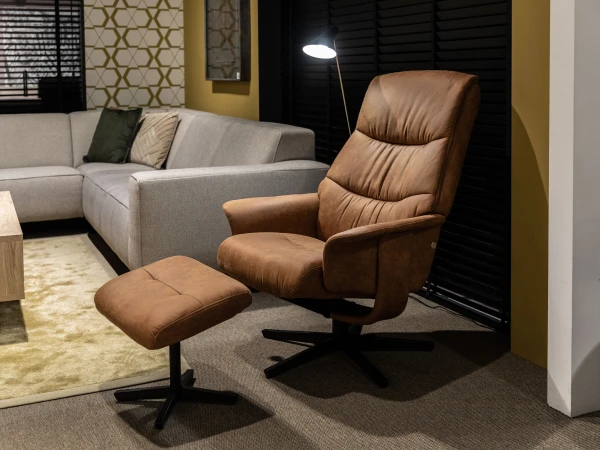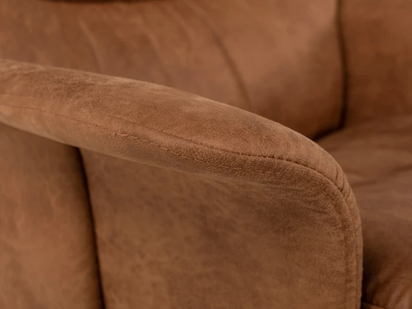 - Deze afwerking: bekleding in cognac microvezel, sterpoot in zwart metaal