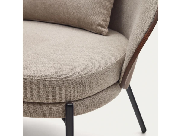 Laat je verrassen door de Eamy fauteuil van Kave Home, een uitgebalanceerde mix van materialen. De rugleuning in essenhoutfineer met een wengékleurige afwerking straalt een warme, natuurlijke charme uit. De zitting is bekleed met een lichtbruine chenille stof die zowel comfortabel als stijlvol is. De metalen structuur, gelakt in een matte zwarte kleur, voegt een moderne touch toe aan het geheel. De fauteuil beschikt over een kussen met een afneembare hoes. Zo zit je heerlijk comfortabel terwijl je geniet van alle rust in deze geweldige fauteuil.