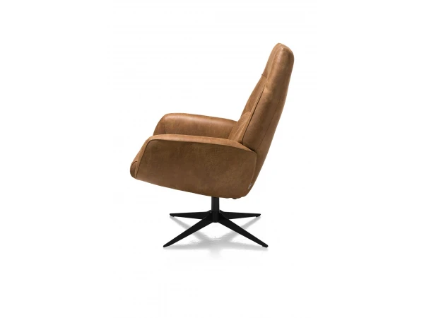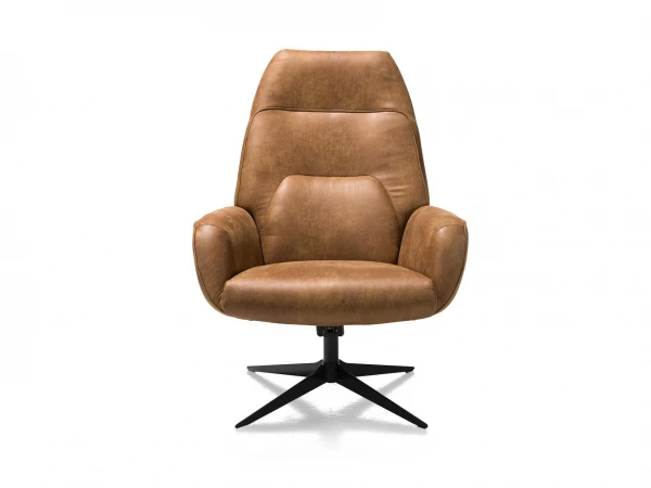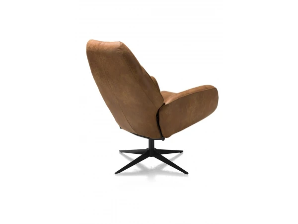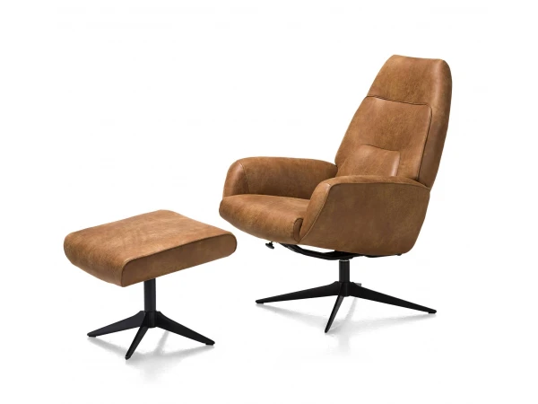 Fauteuil Capri zit heerlijk comfortabel, dankzij zijn armleuning, hoge verstelbare rug en comfortabel zit- en rugkussen. Kies voor deze fauteuil met uniek Xooon-design in stof, leder of de combinatie stof en leder. De zwarte sterpoot geeft een mooi contrast met de cognackleurige stof. Deze fauteuil vormt dan ook een prachtige blikvanger in je woonkamer! Combineer met de bijhorende voetbank voor nog meer comfort.