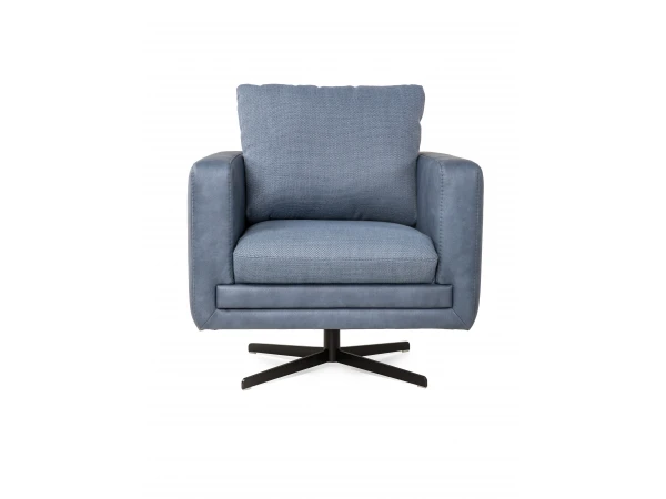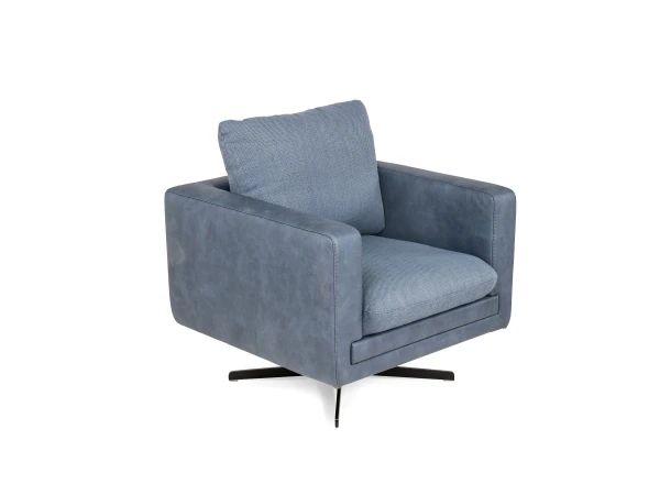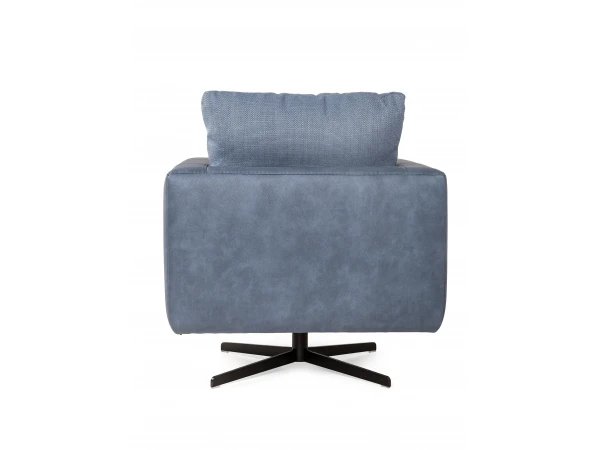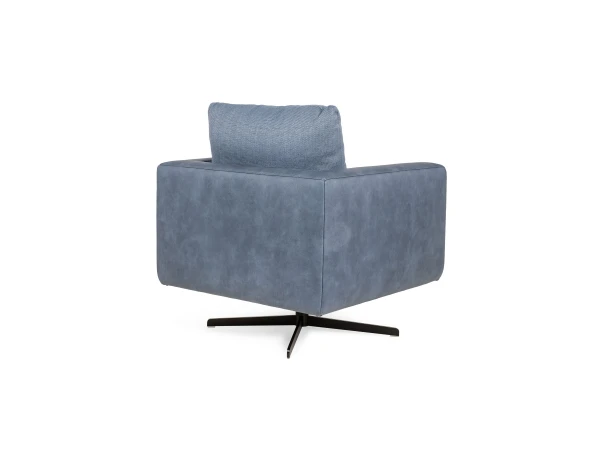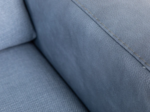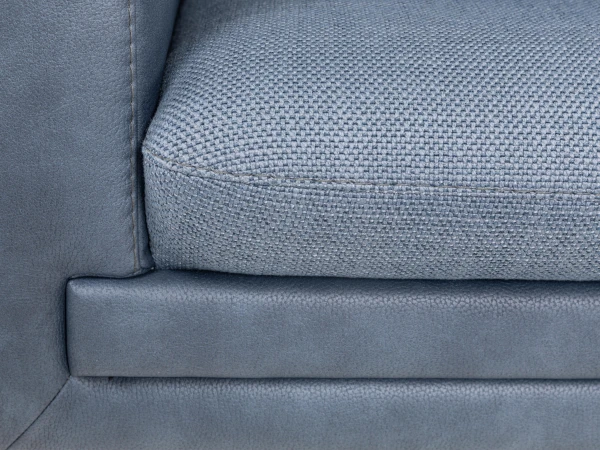 - Deze uitvoering: blauw leder met zitkussens in grijsblauwe stof