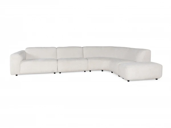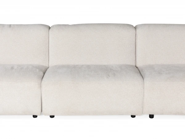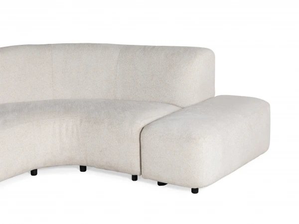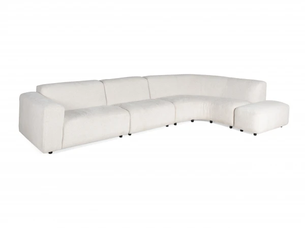 - Deze opstelling: 1,5-zit arm links + 1-zit zonder armen + hoekelement rond + hocker rechts