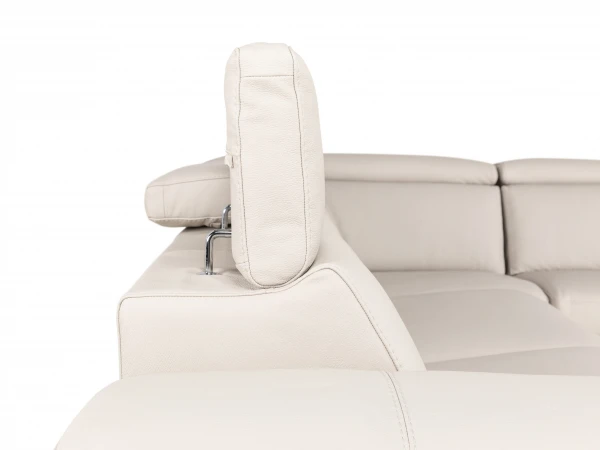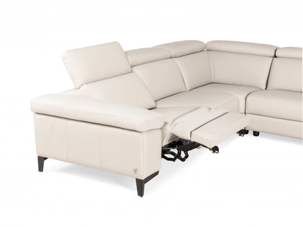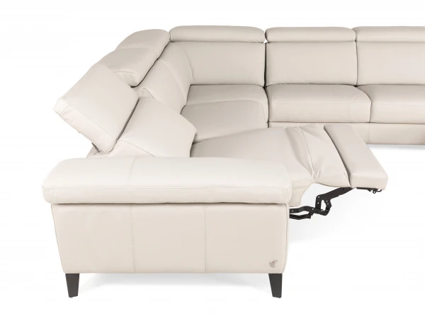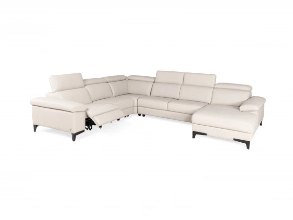 Hoeksalon Nove van Calia beschikt over alle kwaliteiten die nodig zijn om te spreken over een supercomfortabele zetel waar je met al je bezoek in kan. Uitgebreid relaxen is mogelijk door de aanwezigheid van een elektrische relax en longchair. Optimaal genieten? Gebruik dan de verstelbare hoofdsteun. Deze luxueuze zetel is uitgevoerd in wit leder en is ook verkrijgbaar in andere kleuren en stoffen. Kom de hoekzetel gerust eens uittesten in onze showroom!
