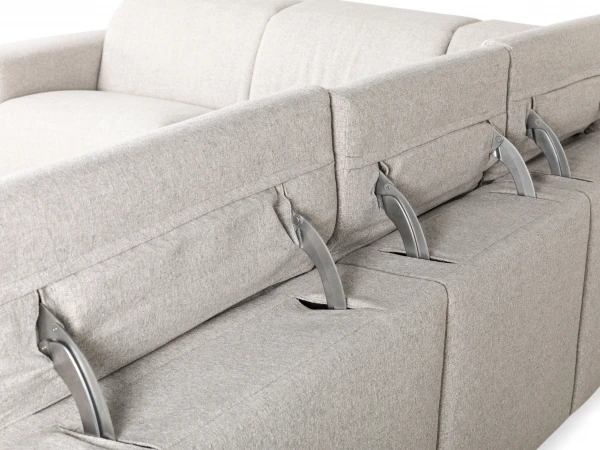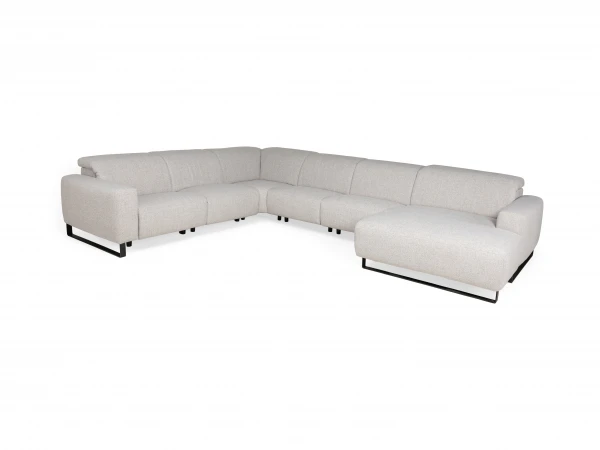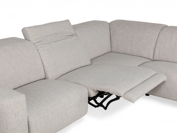 - Deze opstelling: 1-zit zonder armen + 1-zit zonder armen met elektrische relax + 2-zit arm links + hoekelement rechts + longchair rechts