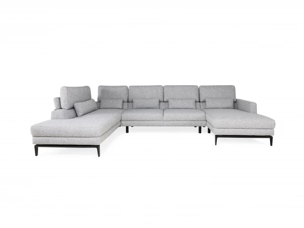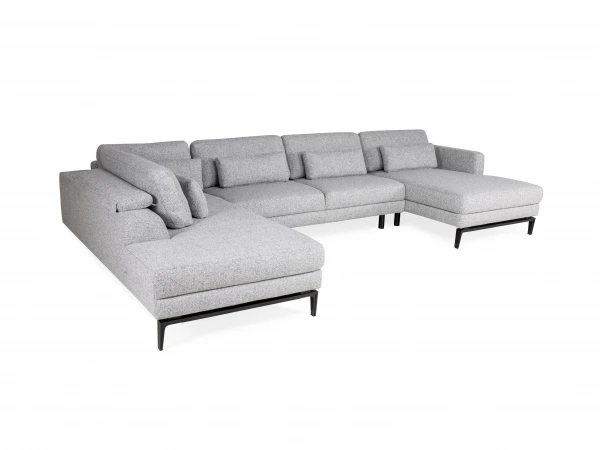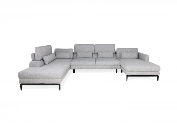 De Santino hoekzetel van Recor is een stijlvolle toevoeging aan elke moderne woonkamer. De lichtgrijze stoffering en het zwarte metalen onderstel geven deze U-zetel een hedendaags karakter. De verstelbare hoofdsteunen zorgen voor extra comfort, terwijl de rugkussens in dezelfde stof als de zetel zorgen voor een uniforme en strakke look. Wil jij ook helemaal ontspannen in stijl met de Santino hoekzetel? Kom gerust eens langs in onze toonzaal om de zetel uit te testen.