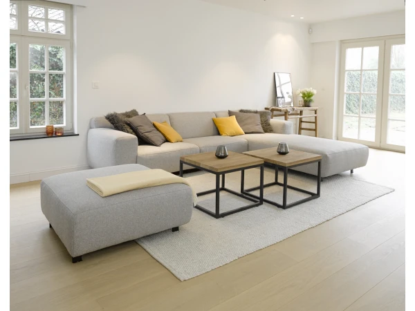 Deze hoektafel is ook beschikbaar als brede salontafel in verschillende afmetingen en kleuren. Of combineer twee hoektafels als salontafel voor een speels effect.