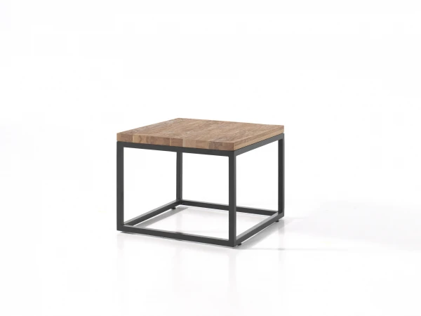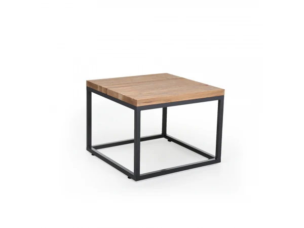 Deze vierkante hoektafel heeft een blad in massief eikenhout en een zwart metalen onderstel. De combinatie van hout met metaal geeft jouw interieur een moderne en gezellige uitstraling.