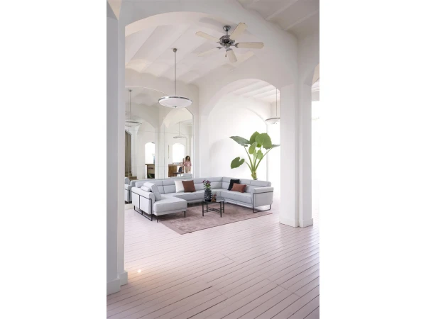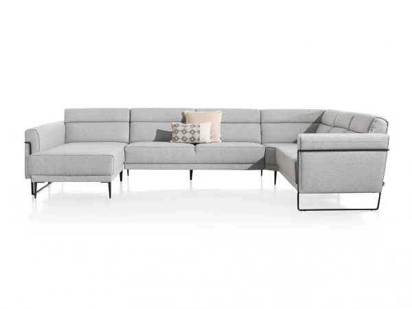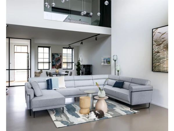 Hoekzetel Fiskardo van Xooon is een unieke zetel met heel wat opties en mogelijkheden. Dit salon in U-vorm biedt zo genoeg ruimte en keuze voor het hele gezin. Hoeksalon Fiskardo komt in een zacht grijze stof en een stoer, zwart metalen frame. Zo heeft zetel Fiskardo een elegante uitstraling met een industriÙle touch. Met dit design van Xooon krijg je ongetwijfeld een prachtige blikvanger in je woonkamer. Kies je favoriete kleur uit de vele kleur- en stofstalen, en stel je ideale zithoek samen! Ook qua zitcomfort en onderstel heb je meerdere mogelijkheden, vraag gerust raad aan de DEBA verkopers in de winkel of online!