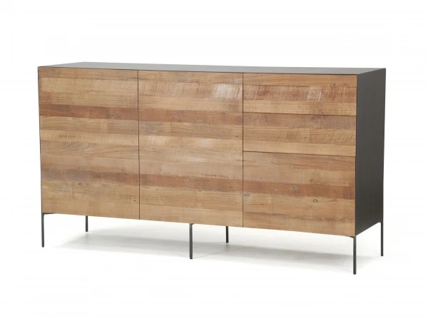 Prachtige dressoir met moderne look. Zo zou je dressoir Fusion kunnen omschrijven. Deze dressoir is een combinatie van metaal en hout, wat zorgt voor een stijlvolle look die perfect in een modern interieur past. Bovendien is er een volledig eetkamerprogramma Fusion beschikbaar. Zo creëer je met de Fusion-collectie eenvoudig een mooi en samenhangend geheel in je interieur. Deze dressoir bestaat uit 2 deuren en 3 laden uit teakhout.