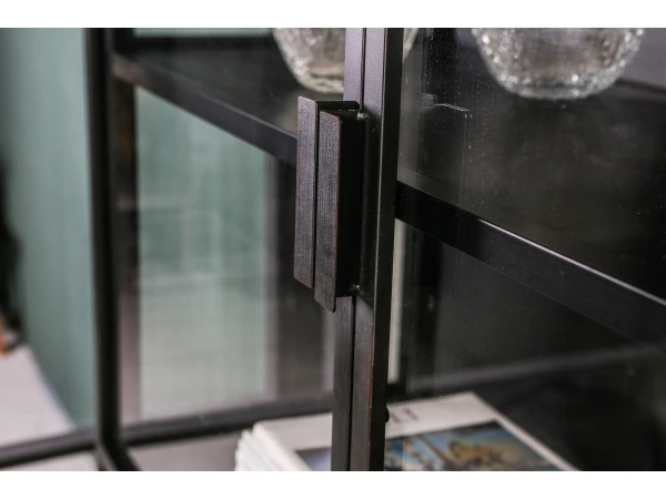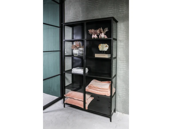 Een prachtige combinatie van stoer en elegant, zo zou je deze kast van PTMD kunnen omschrijven. Deze metalen kast is ideaal voor een modern of industrieel interieur. Het eenvoudige design met smalle poten en glazen deuren zorgt ervoor dat deze vitrine een elegante look heeft. Ook de zijwanden zijn in glas dus je kan meteen al je mooiste foto’s, decoratie en boeken in deze kast plaatsen. Door te kiezen voor neutrale of kleurrijke voorwerpen kan je een totaal andere sfeer creëren.