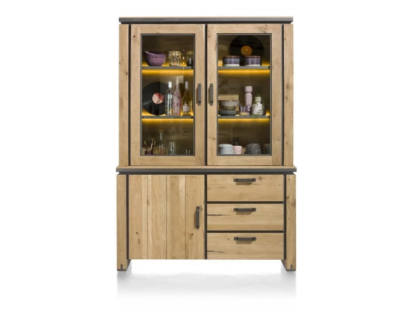 Deze landelijke collectie van Henders & Hazel bestaat uit een volledig eetkamerprogramma, waarbij je naar hartenlust de gewenste meubels kunt combineren om tot de perfecte inrichting van je interieur te komen. Deze vitrine of buffetkast is vervaardigd uit eiken, eikenfineer en metalen afwerking.